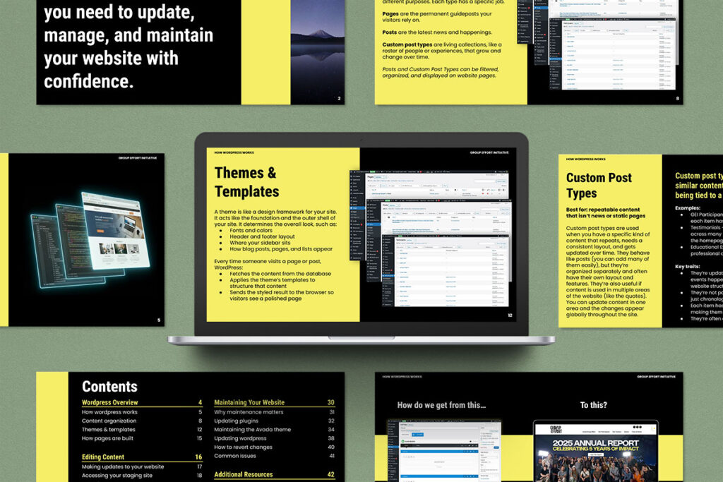 Does your small but mighty team manage your website but are struggling because they don’t have much website experience? It happens. When several people have their hands in the website but don’t feel confident in their abilities, it can be difficult to make meaningful progress. In these trainings, I’ll guide your team through your website and the correct processes to use going forward. How to make updates and edits to website content, modify page structure, manage plugins and updates – the works. And at the end, your team will be given an instruction manual with everything we covered so they can reference it in the future.